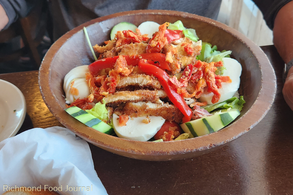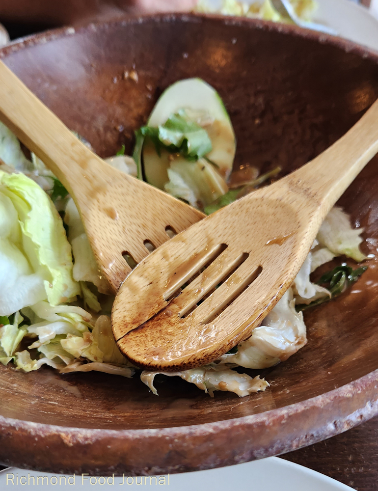 My husband wanted salad, so he ordered the Cobb salad. When his salad arrived, it was a HUGE – it looked the size of a salad they might bring for the whole table to share. And they did bring a bottle of their own house dressing, a creamy balsamic.